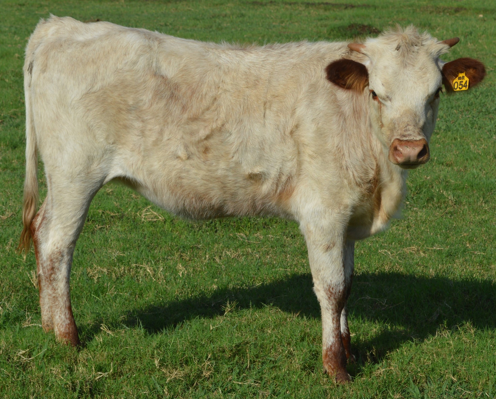 Brindle roan with brindle ears, mouth, and brindle on ankles