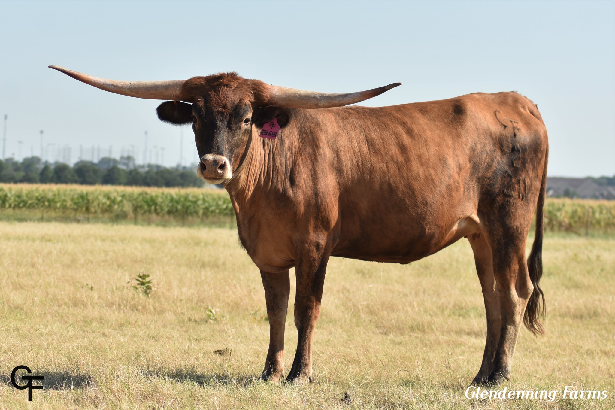 Gorgeous DRAG IRON daughter out of the 91"TTT ALLENS 357. She is tall, great conformation, colorful with beautiful brindle markings, nice horn set, and as sweet as can be with calm disposition. We love her and the genetic goldmine she brings to our herd.