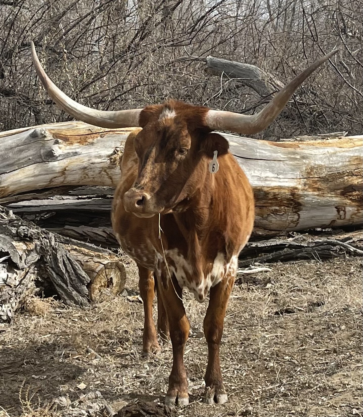 White tag 6 . Red and White cow.