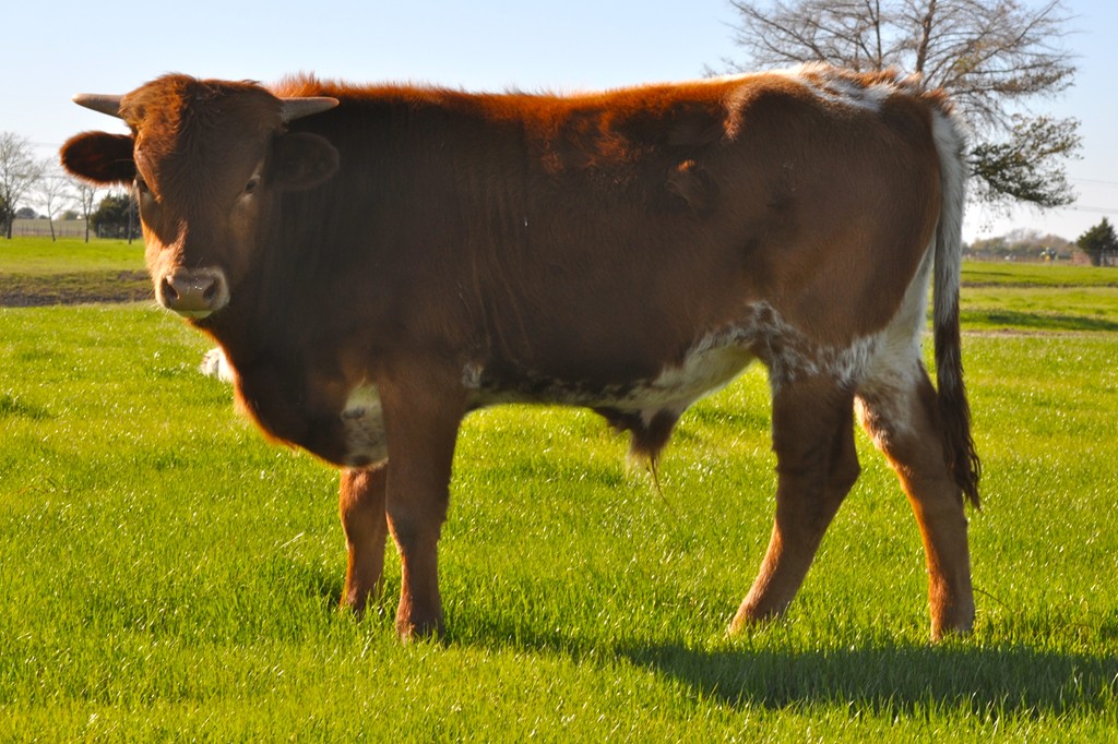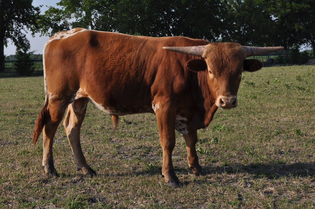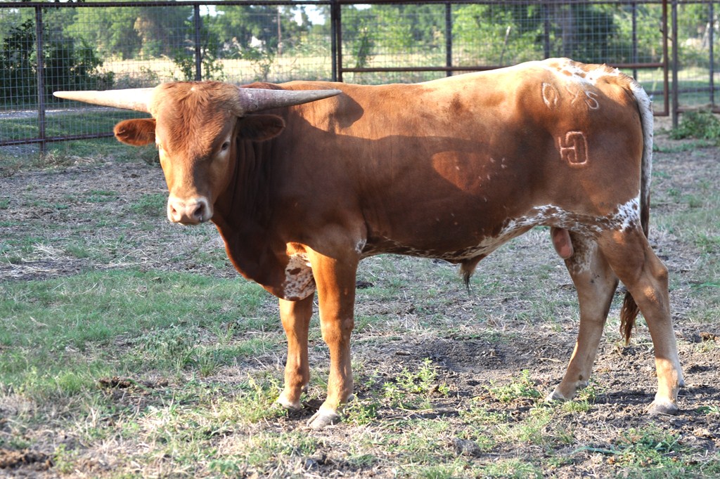 This young bull has as good conformation ever seen on a bull of this age and his horns are coming along very nice. Great potential here with "Drag Iron" as his Sire and a Dam that has produced very nicely. Check out the progeny of GF Atlanta and you will be pleased.