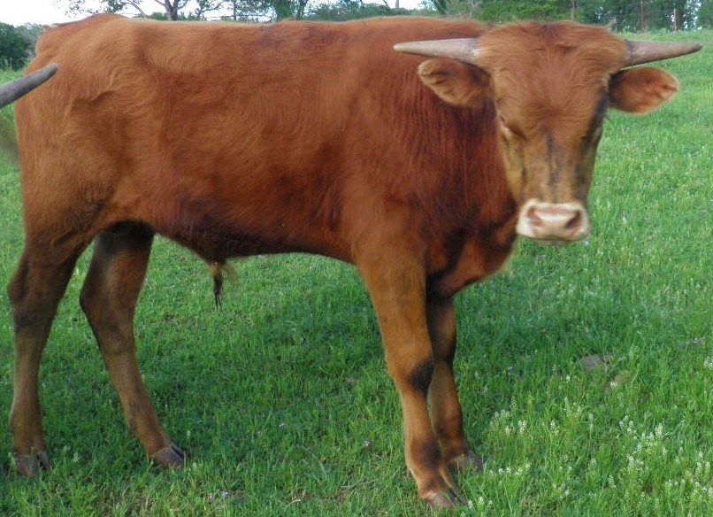 Drag is the son of Drag Iron, his dam is a lateral twisty horn cow that is Owen Mcgill bred. Really starting to Brindle out.