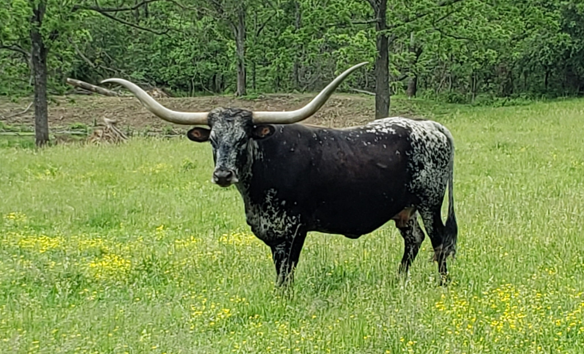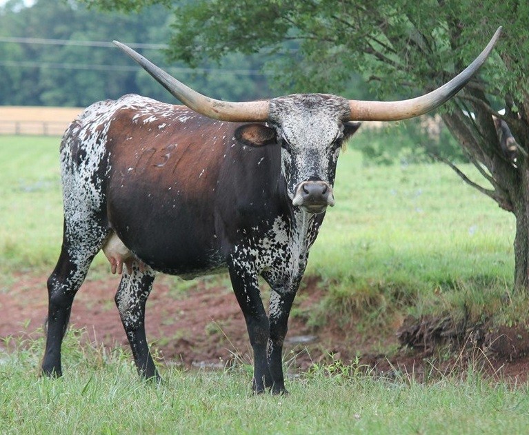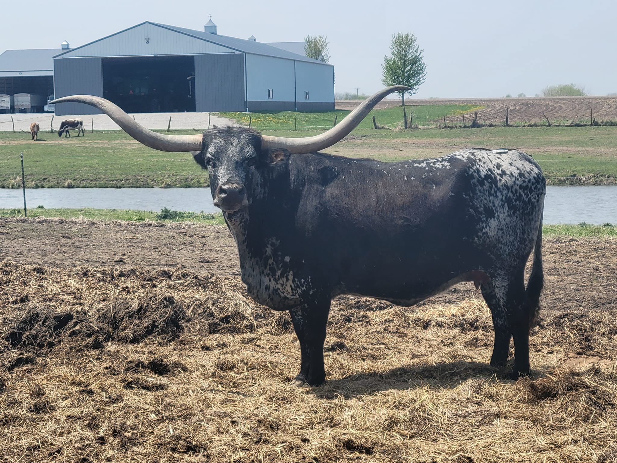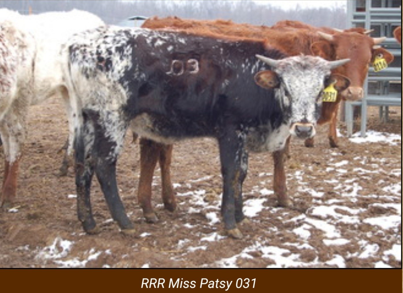 Patsy has it all. Deep body, pretty horn set and a beautiful purple roan color. Eats cubes from your hands. Great mother with a perfect bag.
