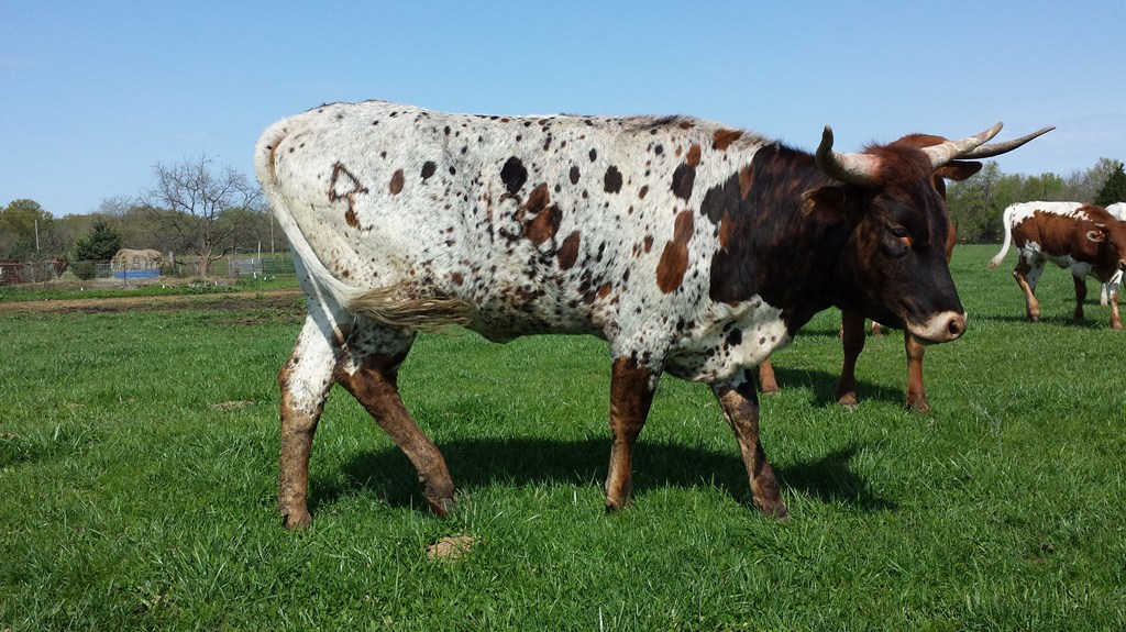 brindle and white spotted and roan
