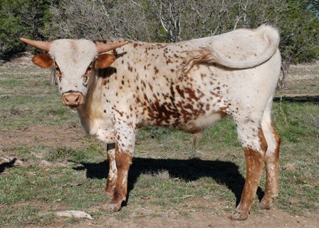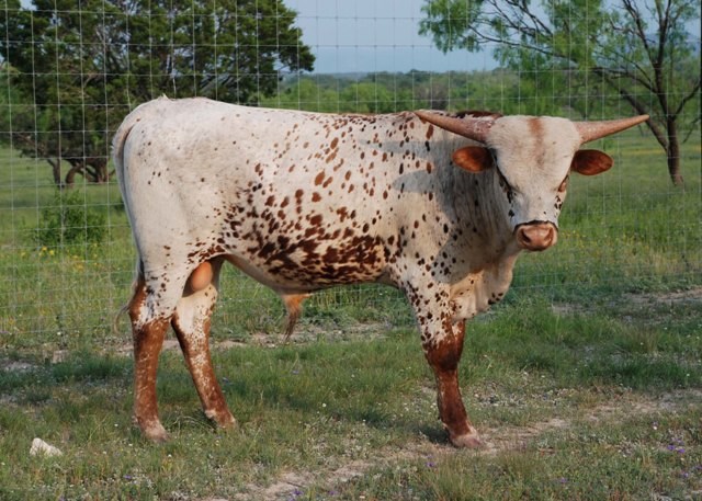 Guess who was bitten by a rattlesnake as a 2 week old? A Drag Iron son out of a striking Top Caliber daughter! Everyone knows Drag Iron and Top Caliber. This bull calf's maternal grand dam is Unattainable, who produced Victory Lap. Longhorn royalty and big horn genetics rolled into one awesome bull.