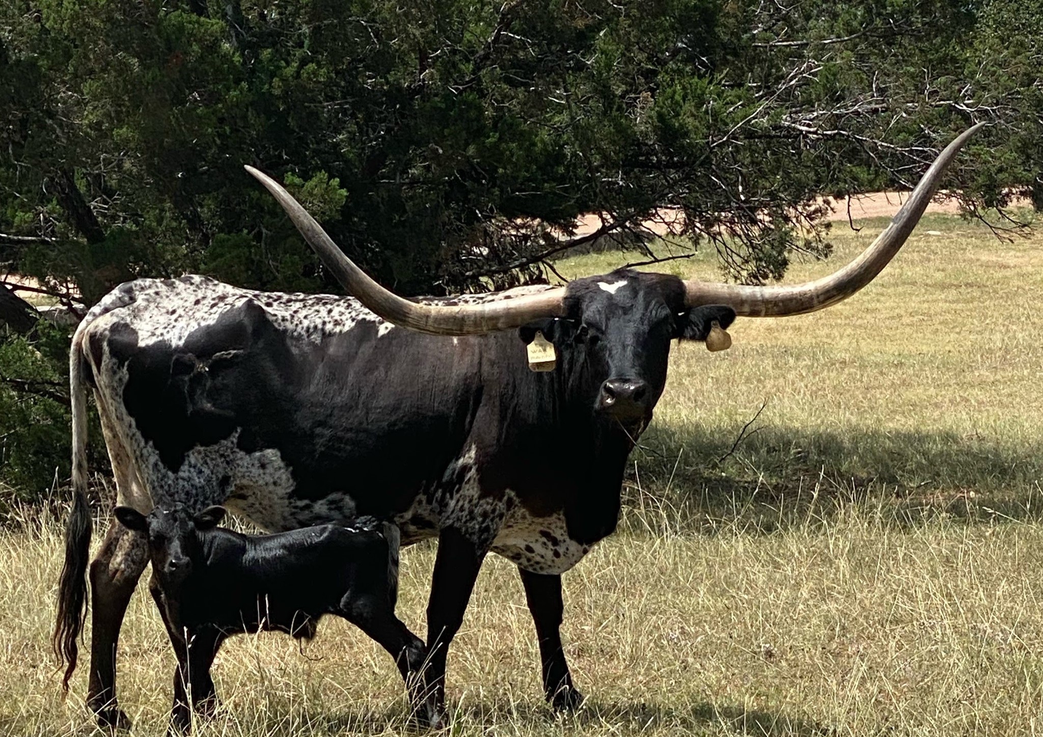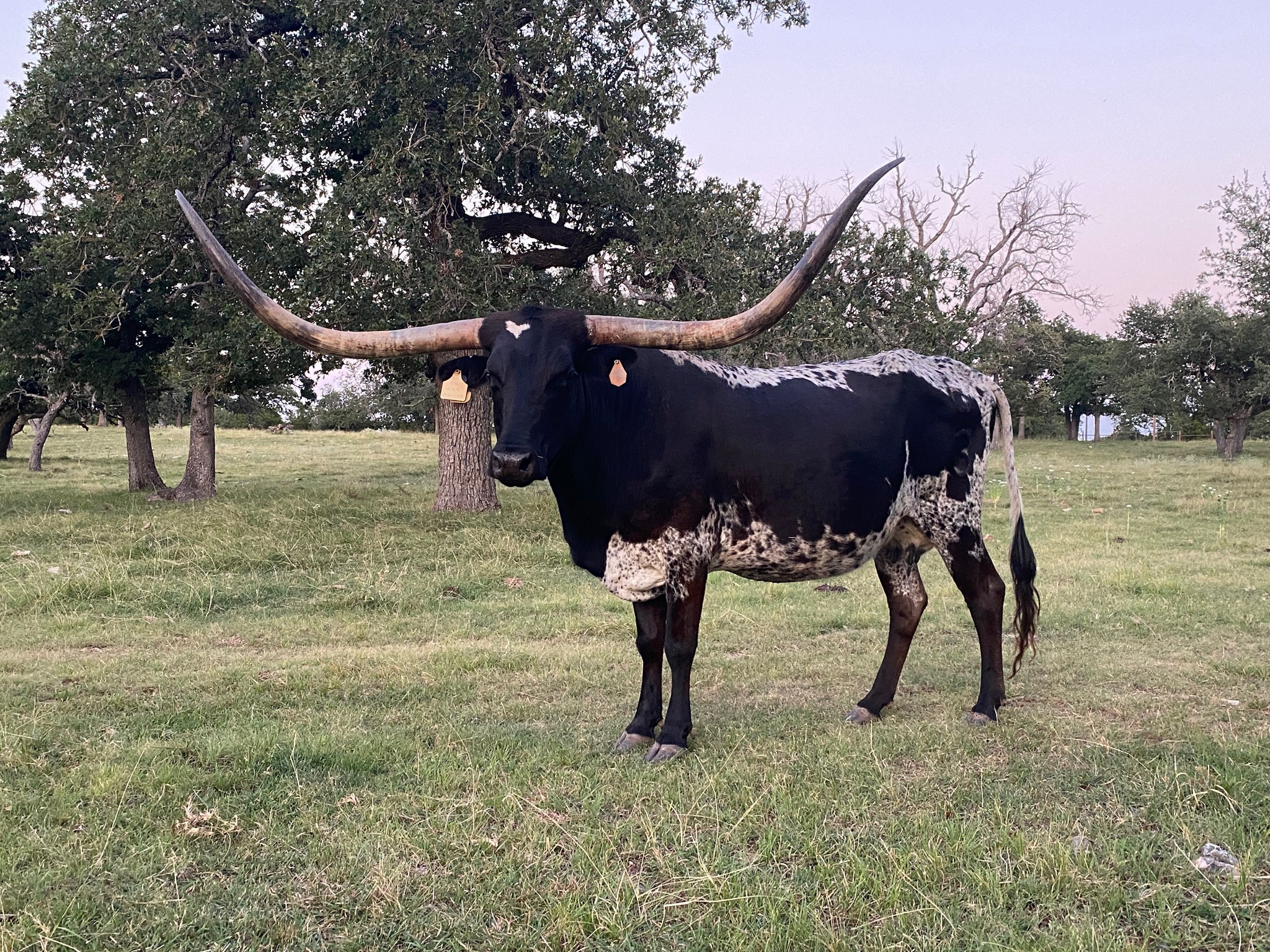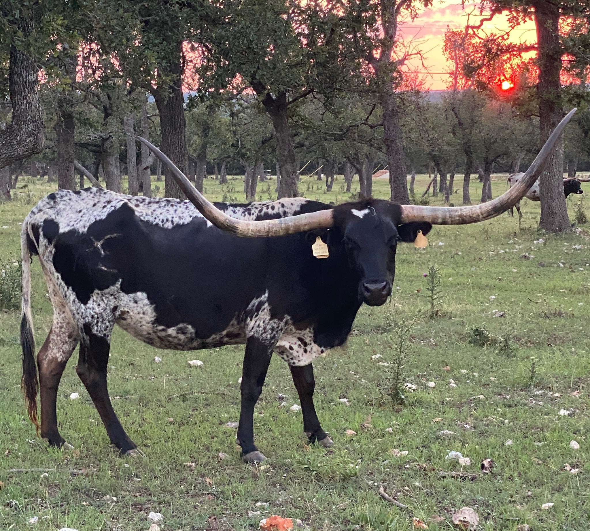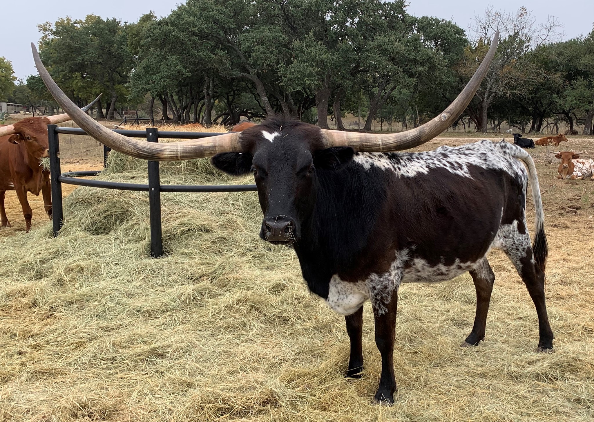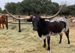 We purchased her from G&P Longhorns in 2021. She is the matriarch of our ranch, being that she is the oldest and the longest tenured resident! She is over 85" TTT with a ton of total horn. To top it off, she only throws true black calves as she is homozygous black (ED/ED). Check out her daughter GP Cut'n Up to give you an idea of what she is capable of producing!