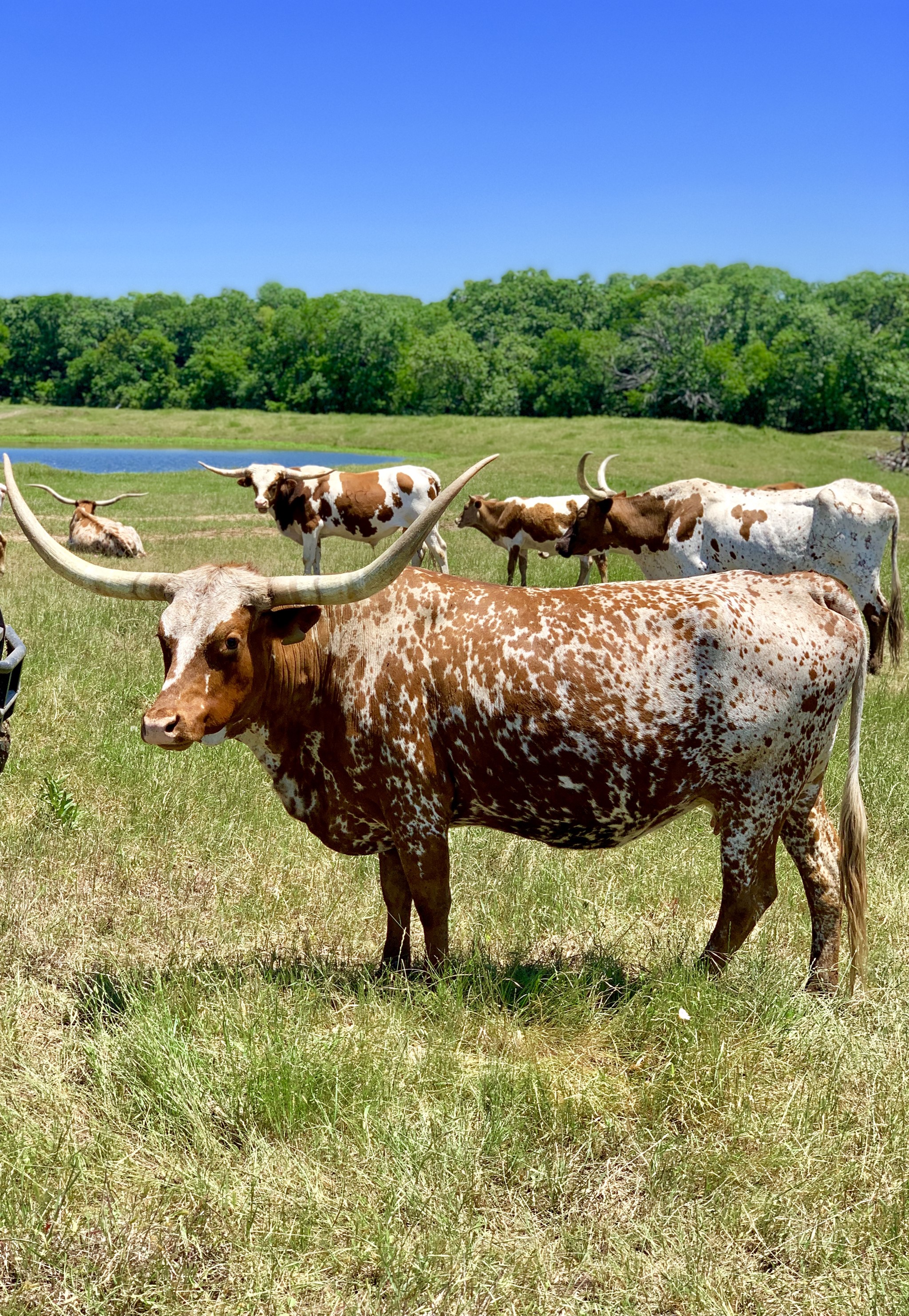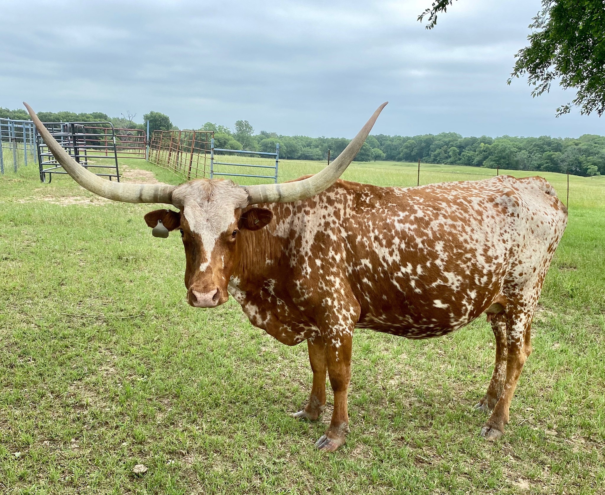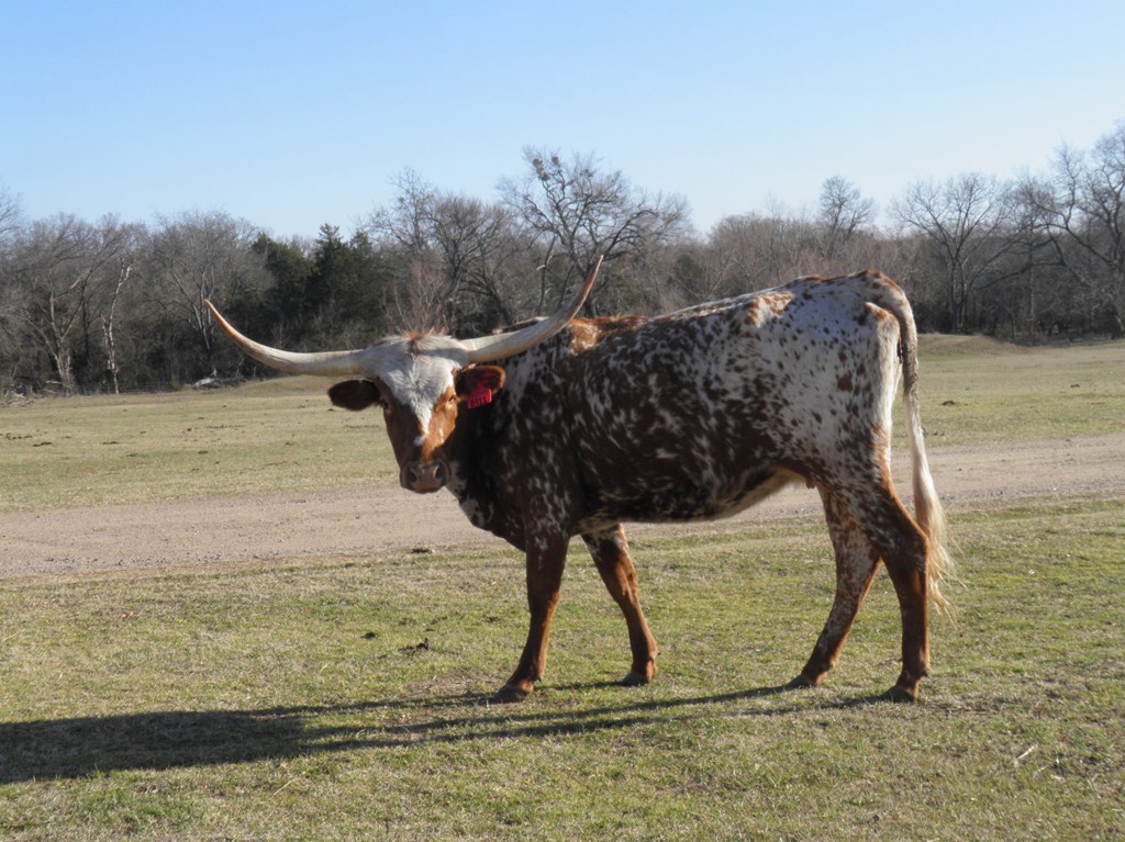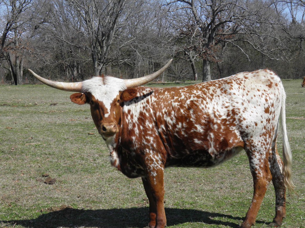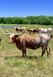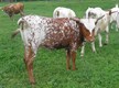 Really colorful heifer with great horns. She is very gentle and quiet.