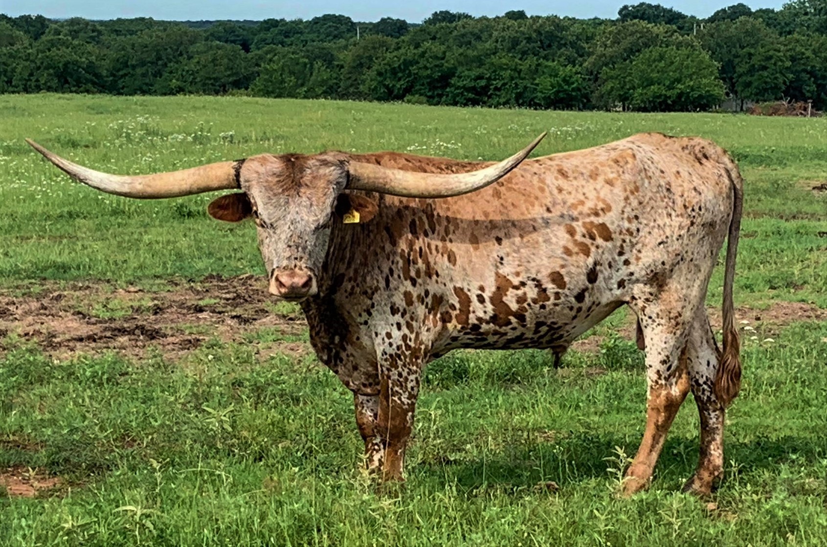This guy is out of one of my favorite bulls Drag Iron. I think he will be the total package like his sire, long, tall, beef build, color and HORN. He is dog gentle and getting more color that a kindergarten classroom floor on finger painting day. He has a jam packed pedigree with Drag Iron, Shadowizm, The Shadow, Victory Lap, Winchester, Jamakizm, Juma, Juju, Over Kill, Phenomenon, and Win Win.
